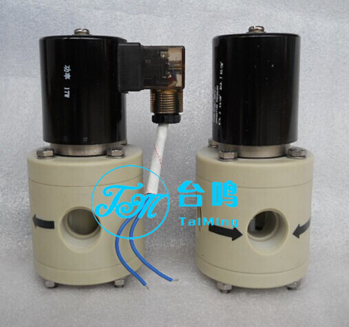 聚丙烯(PP)二位三通電磁閥具有優良的耐腐蝕性能,在80℃下能耐除氧化性外的一般無機酸、堿、鹽、氣體、水等的腐蝕。