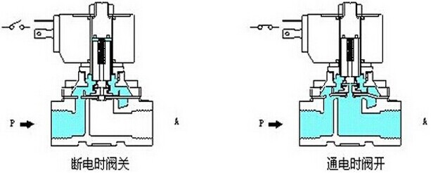 直動式電磁閥工作原理圖: