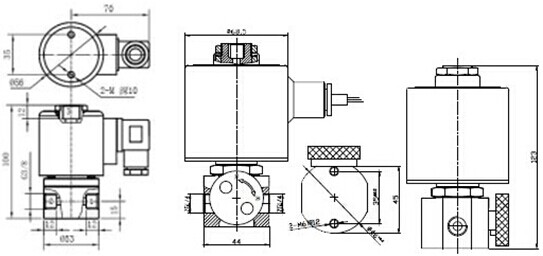 雙線圈二位三通電磁閥外形尺寸: